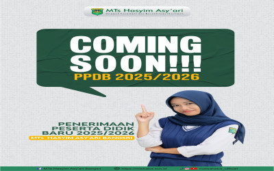 Segera dibuka PPDB MTs. Hasyim Asy'ari Bangsri Jepara TP. 2025/2026, ayo segera daftarkan putra putri Bapak/Ibu ke MTs. Hasyim Asy'ari Bangsri